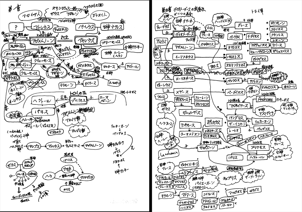 人物相関図で苦労した小説は、ギリシャ神話の「トロイア戦争」、英雄叙事詩「イーリアス」と日本SF小説「銀河英雄伝説」です。メモ用紙を何枚もつなげて絵巻物になった記憶があります。
