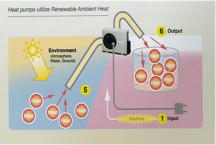 ヒートポンプと言うのは小さいパワーで大気中のエネルギーを吸い上げ、大きな利用エネルギーを作り出す機能を持った省エネ機器である。