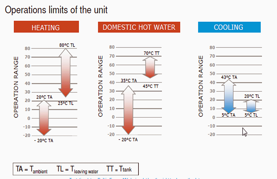 | 図4-2ヒートポンプの作動範囲(欧州ダイキン資料より) |
