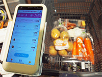 近所の行きつけのスーパー「イオン」で、「レジゴー」という、買い物の計算から支払いまですべて自分でやるシステムを知った(写真上 中央・右)。売り場で商品をかごに入れるごとに、イオン特性のスマホでバーコードに光を当てて、価格と商品名をスマホに入力し、レジ会計では店員のチェックもなく合計額を精算するのに、イオンクレジットやWAON、一般のクレジットカードに並んで、現金もOKだったのには驚いた。キャッシュレスではない。要するにレジ係の合理化である。全部客任せである。キャッシュ(現金)も有りである。