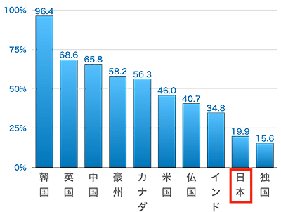 世界各国のキャッシュレス決済比率