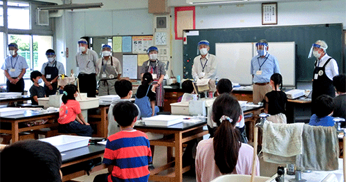 小中学生の出前理科実験教室は、今年度のコロナ禍の環境下、基本方針を理科実験グループ内で確認した上で、イベントリーダーが学校側と意見交換しながら、感染対策とともに授業時間、生徒数、講師数などの授業条件などを詰めて、要請があれば実施してきた。例えば、子どもとの密を避けるため、指し棒で遠くから指示したり、広い教室を使い、その代わりマスクやフェイスシールドをしていても声が届くようにマイクを用意した。出前理科実験は、その名の通り、教室に出向き児童生徒と対面して、一緒になって実験を通して、児童生徒とともに感動することにより、理科に興味を持ち、将来、自然科学に理解のある人材、望ましくは日本を支える技術者、科学者を育てることを目標としているので、オンラインやオンデマンドでは、その目的が達成出来ないとの意見が多く、学校からの中止、延期の要請を従って、大幅な中止、延期を余儀なくされている。