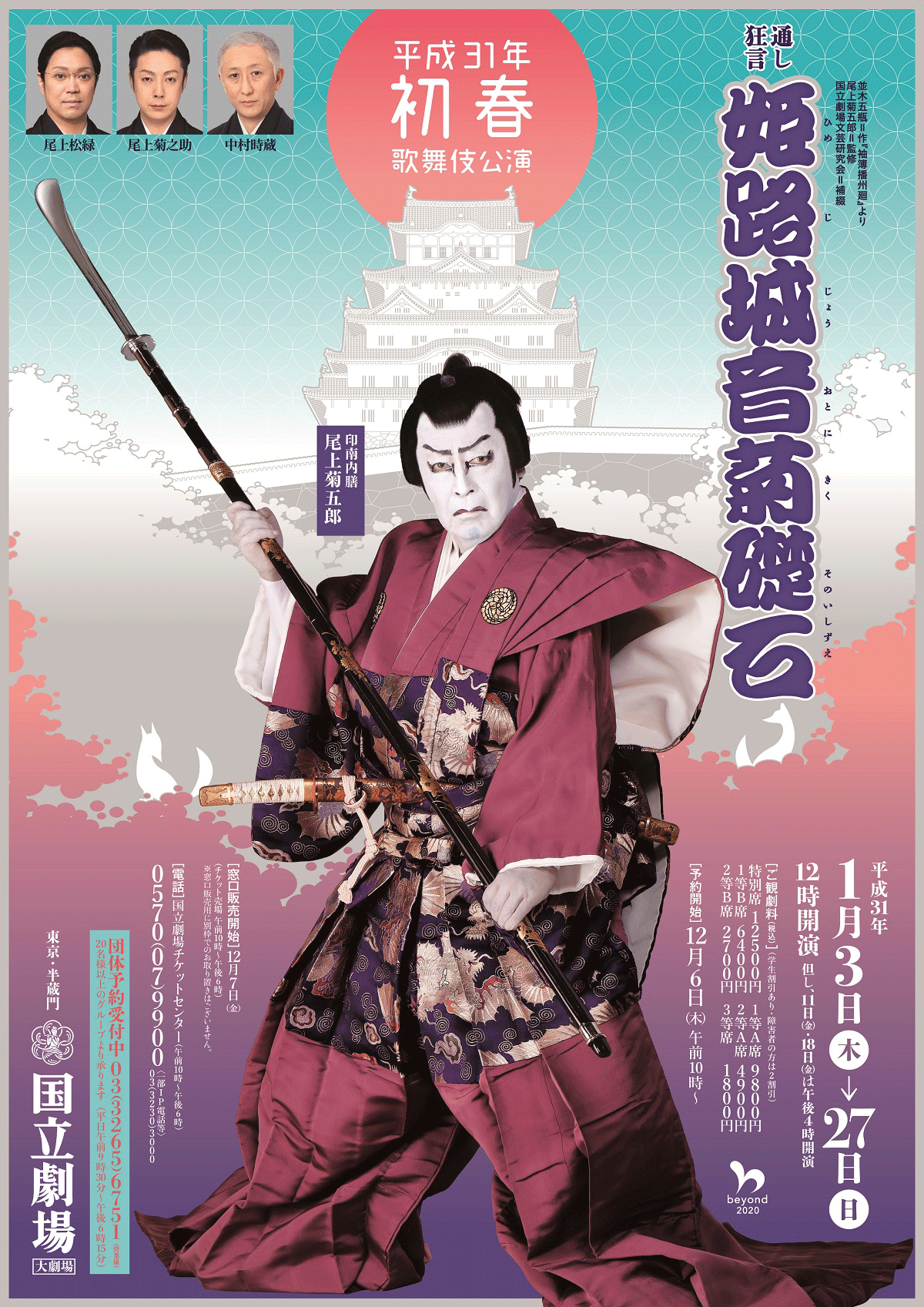 公演は、国立劇場正月恒例の国立劇場文芸研究会と菊五郎劇団とのコラボによる復活狂言「 姫路城音菊礎石 」。1779年初演の 並木五瓶 の作品をベースに 補綴 を加え平成歌舞伎に再編されたとのこと。姫路城城主桃井家の御家騒動に狐の恩返し 譚 を 綯 い交ぜにする歌舞伎お得意の一巻というところ。