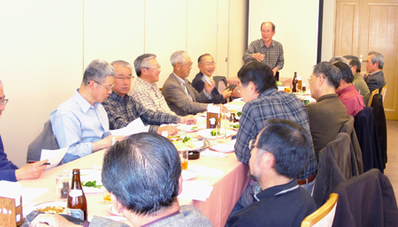 「DFのゴルフ会に参加して2年余りが経ちますが今日まで入賞の機会が全くなかった小生でしたが初めての入賞が優勝とは喜ばしい限りです。3度目の習志野CCでの挑戦でした。好天とパートナー(西村英俊さま、米長栄一郎さま、今井祐さま)に恵まれて楽しくラウンドできたことが勝因の一つでした。数年前にお蔵に仕舞っていたかまぼこタイプのパターを取り出して久しぶりに使ってみたらこれが幸いにもカップインをしてくれました。ダブルペリア方式でのHCPにも恵まれたことが第2の要因でしょうか。これからもDFゴルフ同好会や親睦会を通じてゴルフを楽しくやってゆきたく存じます。出来るだけ多くの会員の皆さまとご一緒できれば幸いです。今後ともよろしくお願いします」(写真右は、優勝のスピーチを述べる長谷さん)